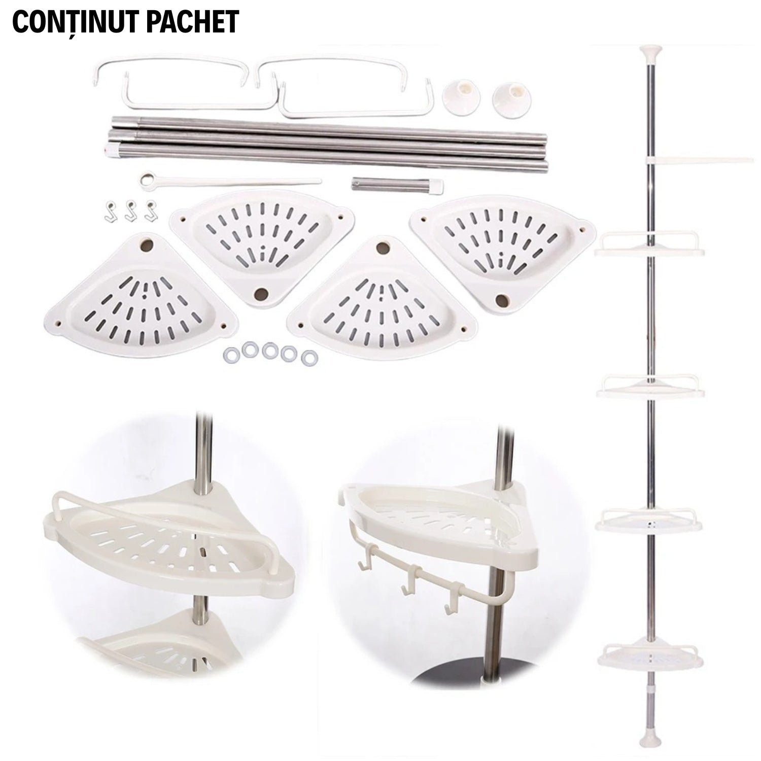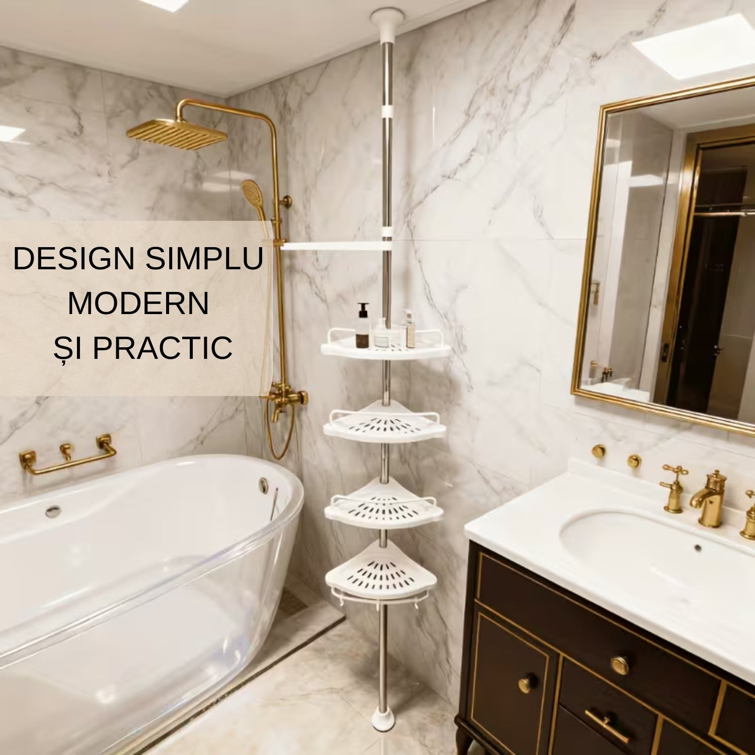 Raftul telescopic se potrivește în orice colț, indiferent de dimensiunea încăperii.