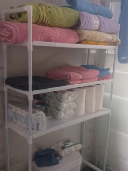 🔹 3 polițe spațioase pentru detergenți, prosoape, hârtie igienică și produse de igienă.